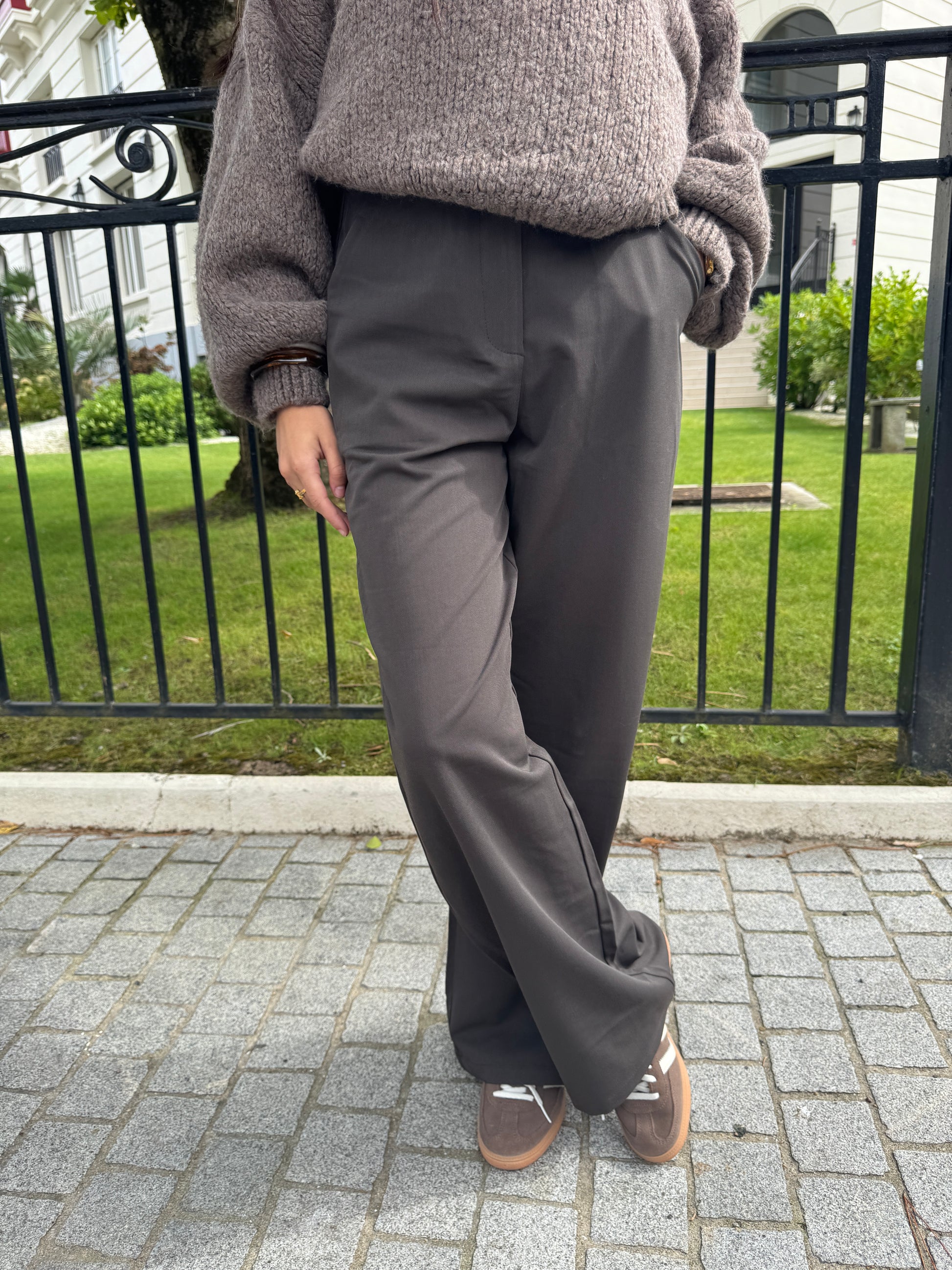 Ce pantalon de tailleur choco, existe en plusieurs tailles. L'association parfaite avec son blazer croisé choco.