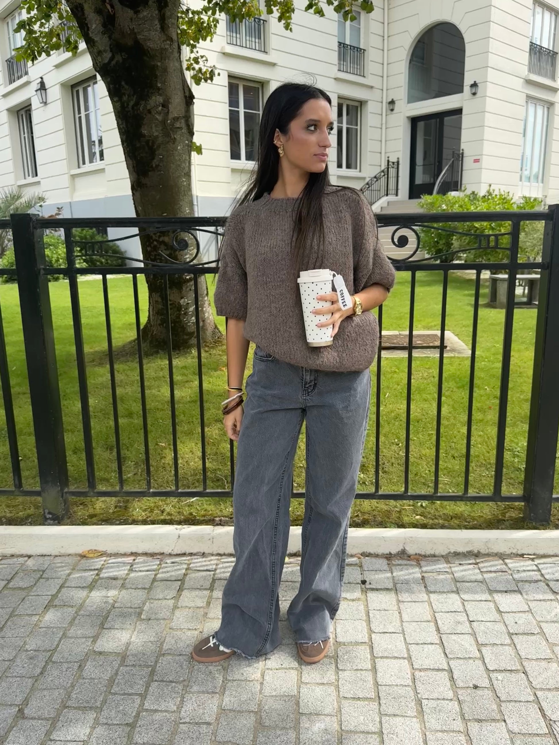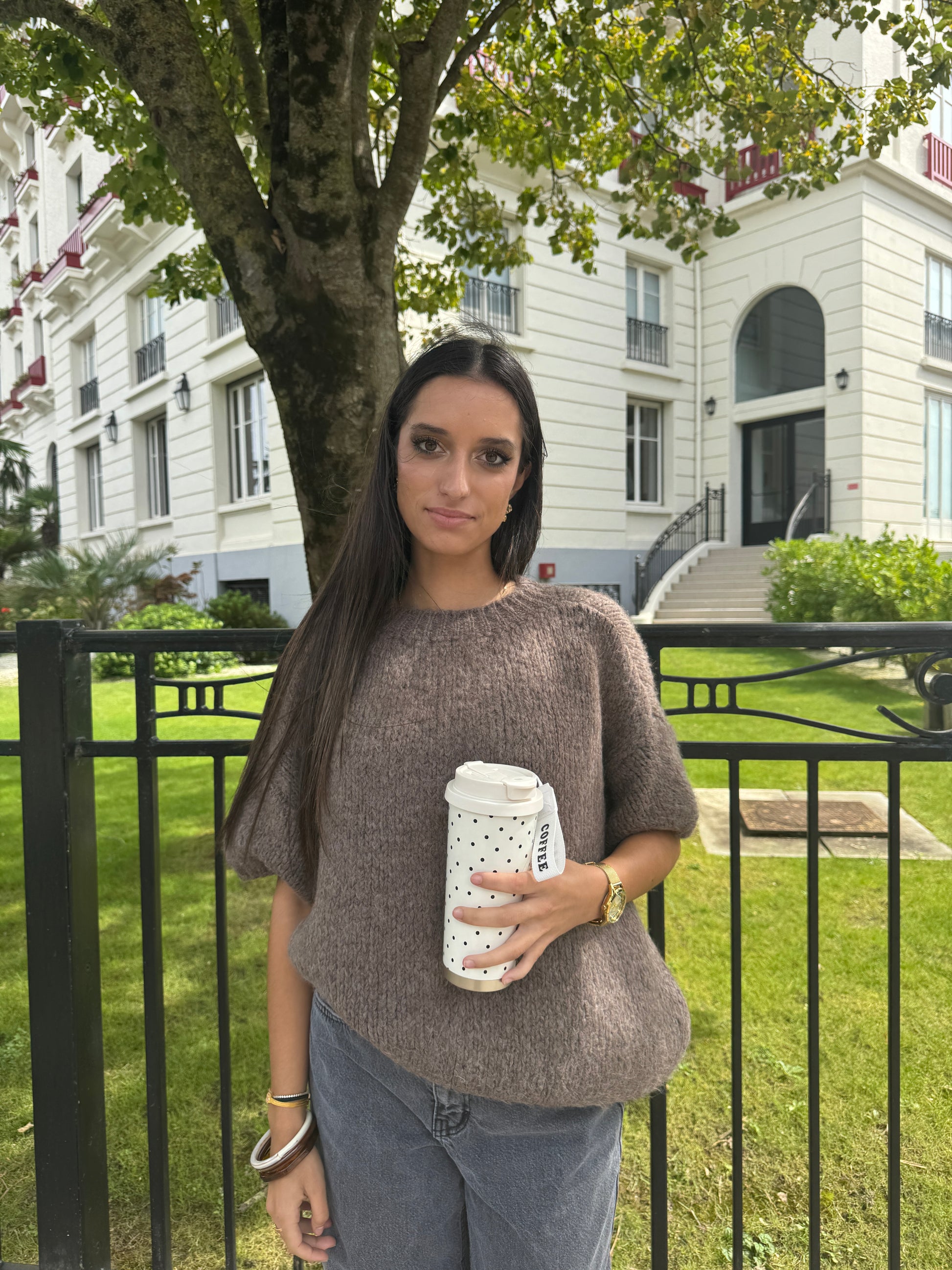 Ce pull est en taille unique, allant du 34 au 44. Il existe dans différentes couleurs : choco, marron clair & écru.
